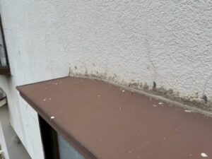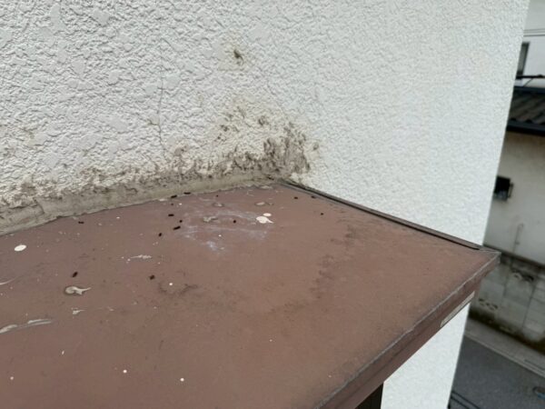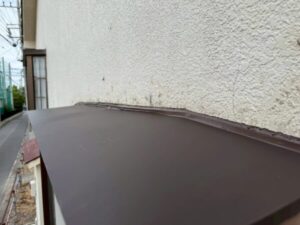 庇に大きな劣化は見られませんが、経年劣化による汚れが付着しています。