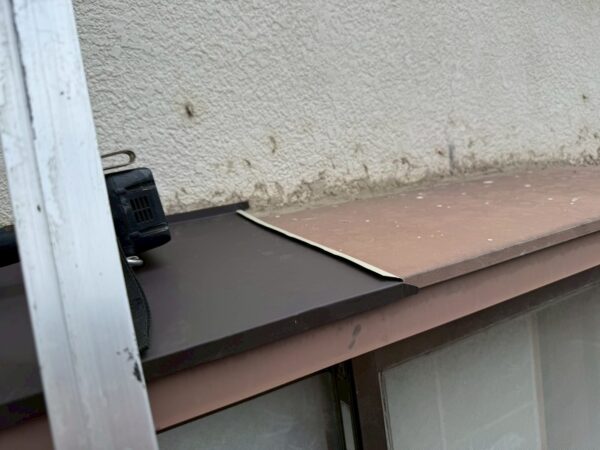 庇の見栄えを整えるため、上から板金を取り付けることで対応させていただきました。