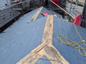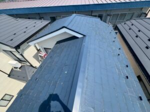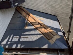 その為かなり、屋根の剥がれや捲れが激しく、放置知ておくと雨漏りのリスクがございましたので、今回は新たな屋根材を上から葺くカバー工法を行いました。
