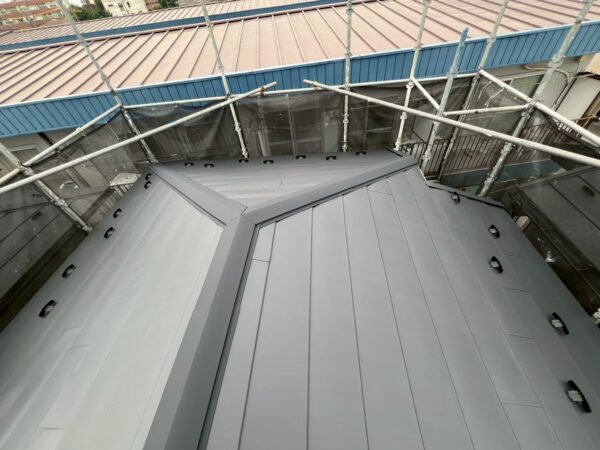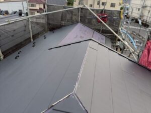今回は大屋根だけではなく、一階の下屋根部分も施工いたしました。