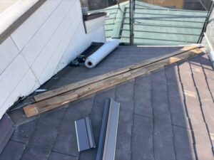 写真に見えている木材は、棟板金の下地だったもの。