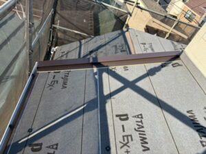 ここで敷いているものはルーフィングといい、屋根のための防水材です。