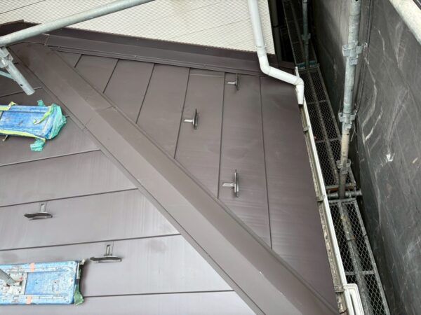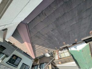 スレート屋根から横暖ルーフ(金属屋根)へのカバー工法です。