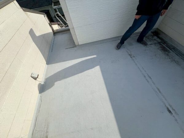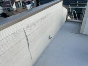 こちらは明らかにひび割れがあり、バルコニーの防水塗装の劣化具合が見られます。